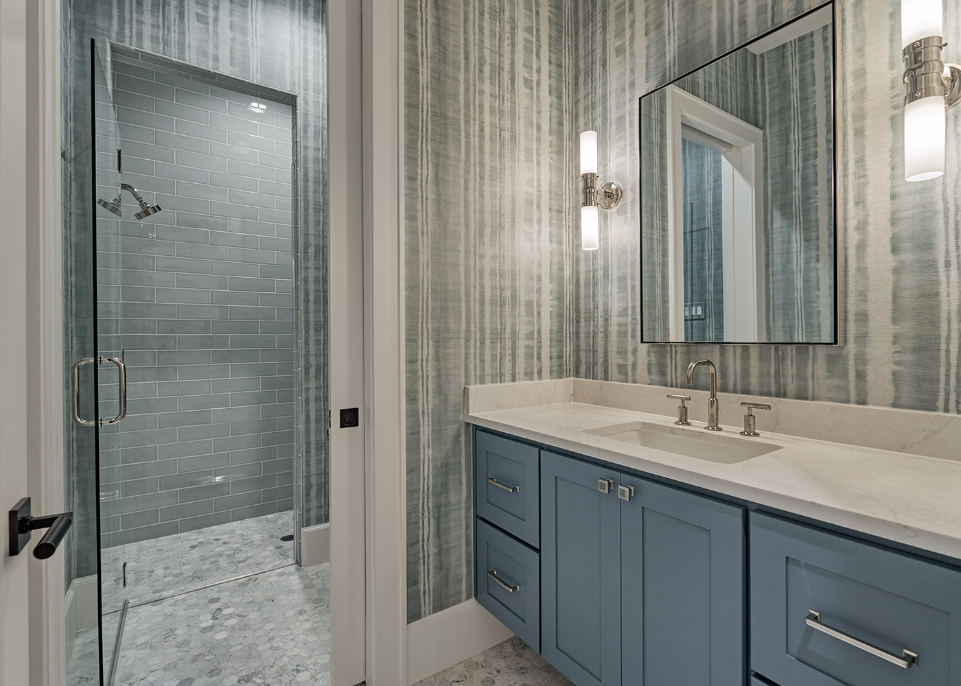 Tucked away on 1.53 acres in a serene cul-de-sac at Bluejack National, this custom residence offers an ideal blend of privacy, comfort, and resort-style living. The home features three spacious bedrooms plus a bunkroom, complemented by five and a half bathrooms, designed to accommodate family and guests with ease.