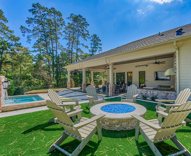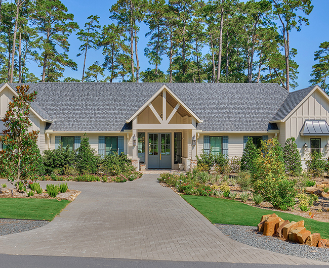 Set on a secluded, wooded homesite near a creek, this ranch-style estate at Bluejack National blends casual elegance with thoughtful design. Surrounded by mature trees, the property offers a private sanctuary where indoor and outdoor living flow effortlessly.
