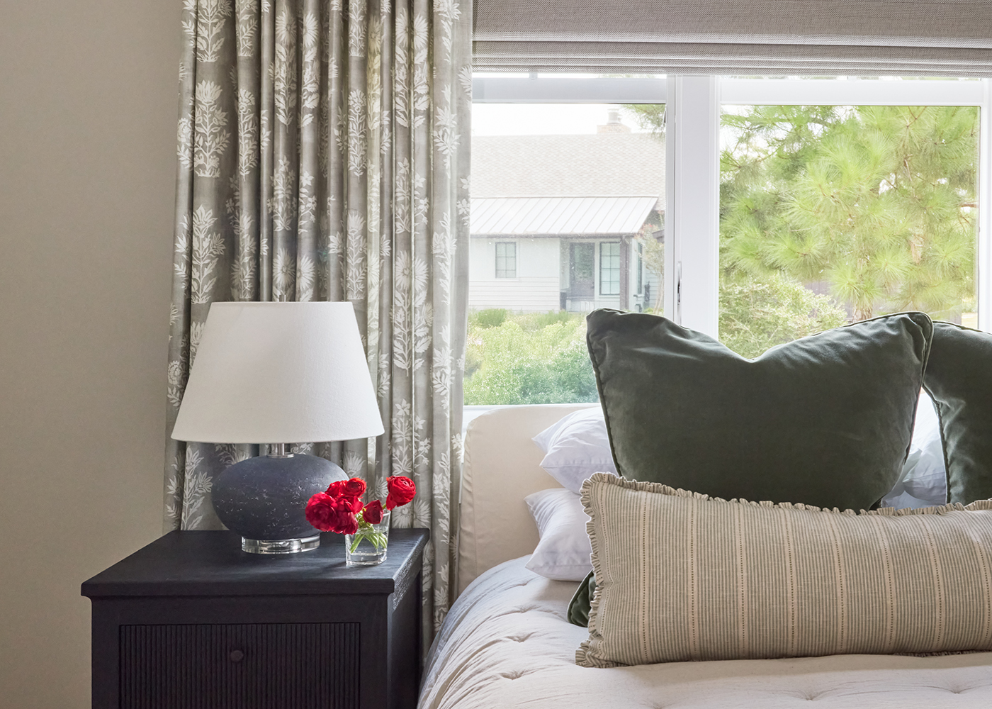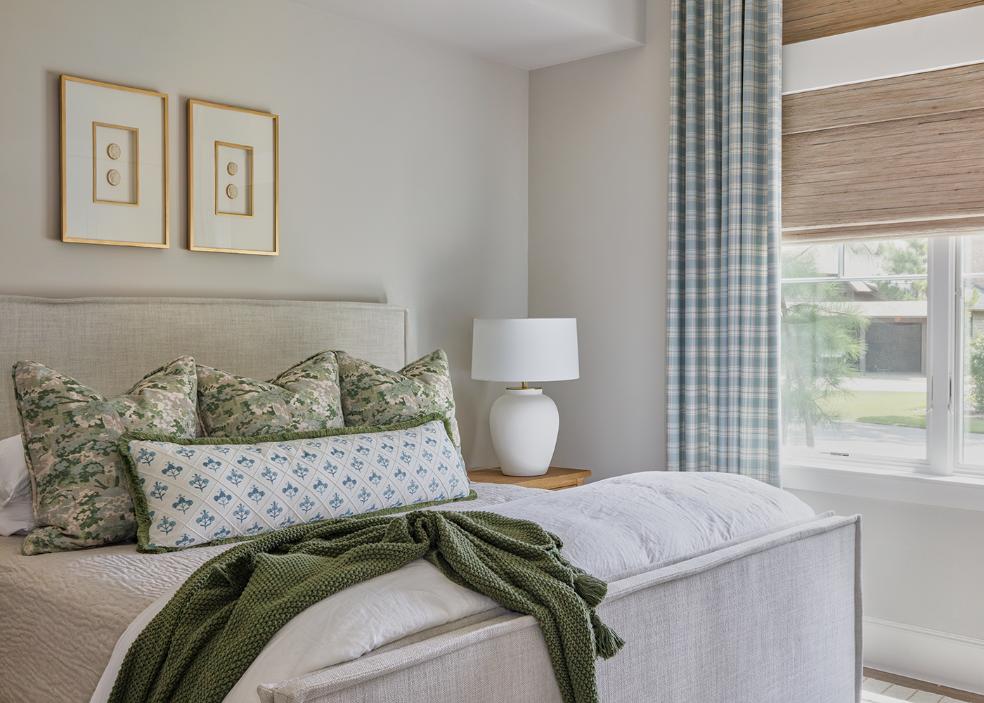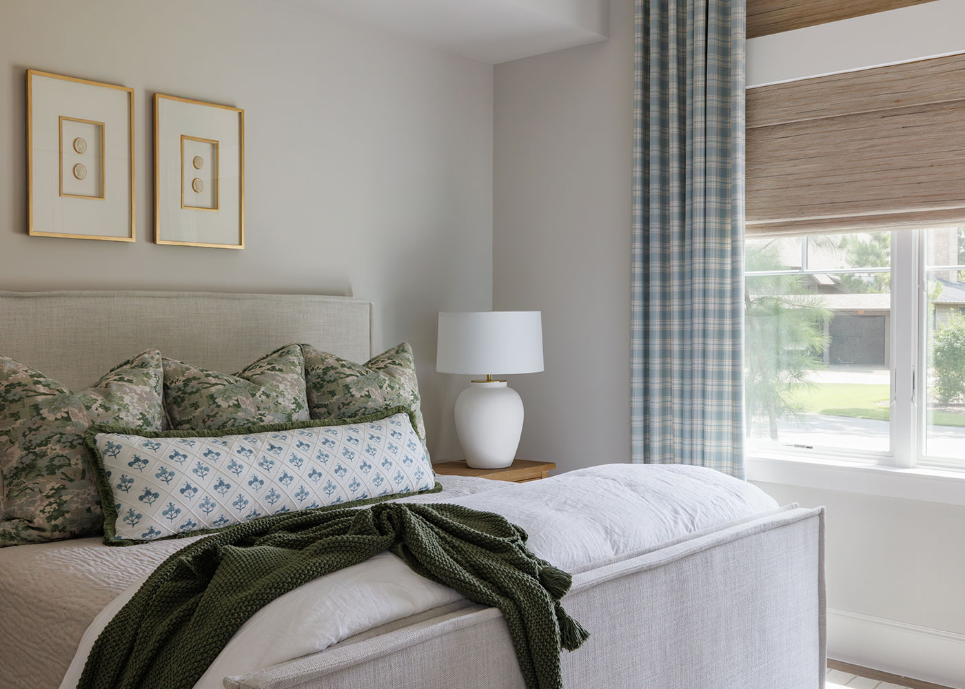The Cottage was designed to create warm, inviting spaces both indoors and out. The outdoor area drew inspiration from the clients’ love of plaid, featuring a green plaid sofa as the focal point, complemented by patterned accent pillows and rocking chairs perfect for morning coffee or evening wine. Indoors, the living room served as a versatile family gathering space, with a low-profile coffee table, spacious sectional, and cozy performance fabrics in warm tones, blending comfort, functionality, and style for everyday living and playful moments.